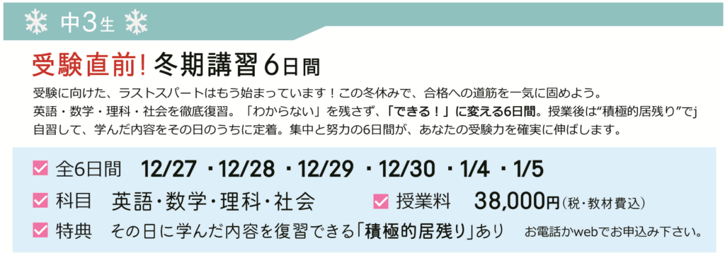 中3生向け 受験直前!冬期講習