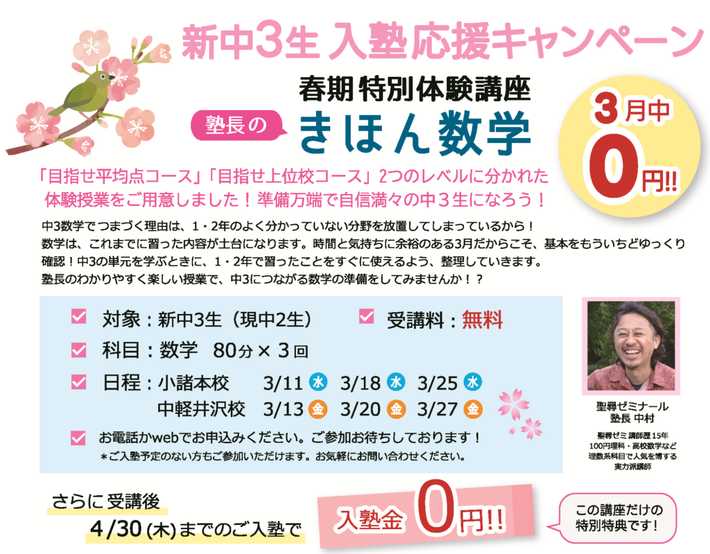 【新中3向け】体験授業「きほん数学」 | 聖尋ゼミナール 小諸・軽井沢 学習塾